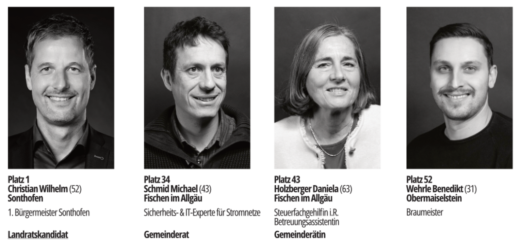 Um die Interessen von Fischen und der Hörnerdörfer im Landkreis zu vertreten ist es wichtig in diesem Gremium möglichst stark und kompetent vertreten zu sein. Die folgende Kandidaten bewerben sich hierfür dafür auf der Kreistagsliste der „Freien Wähler Oberallgäu“ (FWOA) um Deine Stimme!